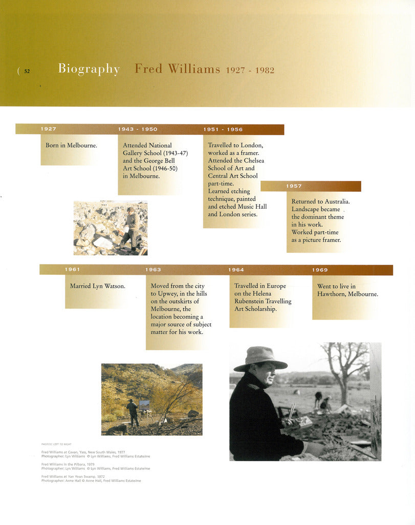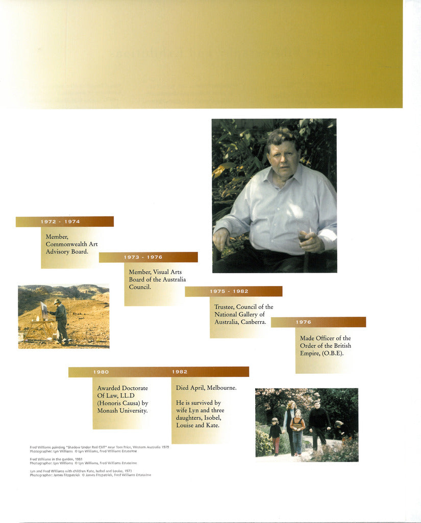 Patrick McCaughey has been the Directror of three major art museums: the National Gallery of Victoria, Melbourne (1981 - 87); the Wadsworth Atheneum, Hartford, Conn (1988 - 96); The Yale Center for British Art, New Haven (1996 - 2001). He produced the first comprehensive monograph on Fred Williams in 1980, subsequently reprinted three times. In 2003 he published an Australian memoir, The Bright Shapes and the True Names (Text, Melbourne). He lives and works as a writer in New Haven, Connecticut.